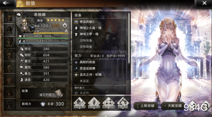 但客观来说,这类角色不拉到4觉很难发挥出全部实力,所以G哥将她与另一位放在最后说;如果前面的角色朋友们有了或者都不想换,那就可以考虑Ex大雷,她的6星和灯火很值得期待。