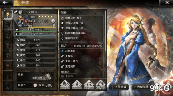 但有句丑话必须说在前,在不会太远的将来,G哥个人预计2个月之内,BD2联动会放出一位剑士叫“林德阿贝尔”,二代主角还有一个剑士叫“光”,这两位出现后艾丽卡的地位会再降低,朋友们根据自己的队伍情况纠结一下吧。