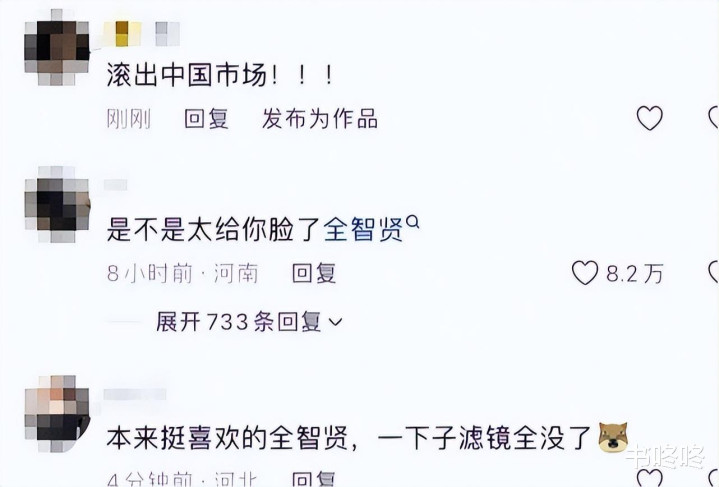 网友持续施压:大量网友涌入这些品牌的社交媒体评论区,要求品牌与全智贤解约,并明确表示“辱华艺人不应被中国市场接纳”。