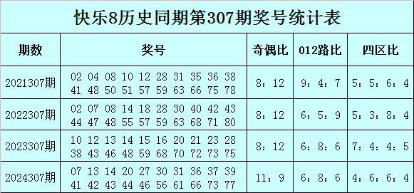 快乐8历史同期第307期号码分析