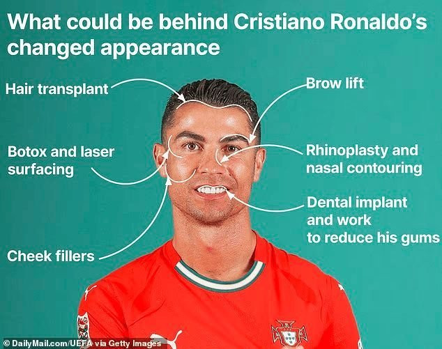 #C罗可能做过多次整容手术#据@头条新闻:每日邮报的独家报道,纽约市顶尖整形外科医生之一埃利-莱文博士透露,自22年前在老特拉福德球场首次亮相以来,这位前锋据称接受了多次整形手术,以打造他那魁梧俊朗的外形。全文👉