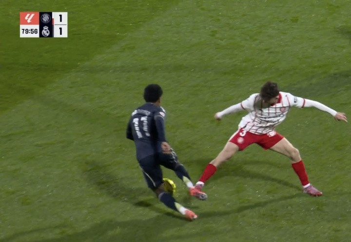 皇马在比赛最后阶段1-1平时,投诉罗德里戈应获点球。在禁区内,乔尔·罗卡的右脚碰到了罗德里戈的右腿,导致后者在禁区内倒地。当时罗德里戈就投诉应判点球。