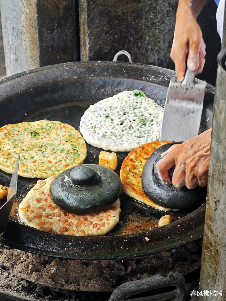 徽州传统小吃,馅儿有梅干菜、豆黄、韭菜等,外皮脆脆的,趁热吃很香。