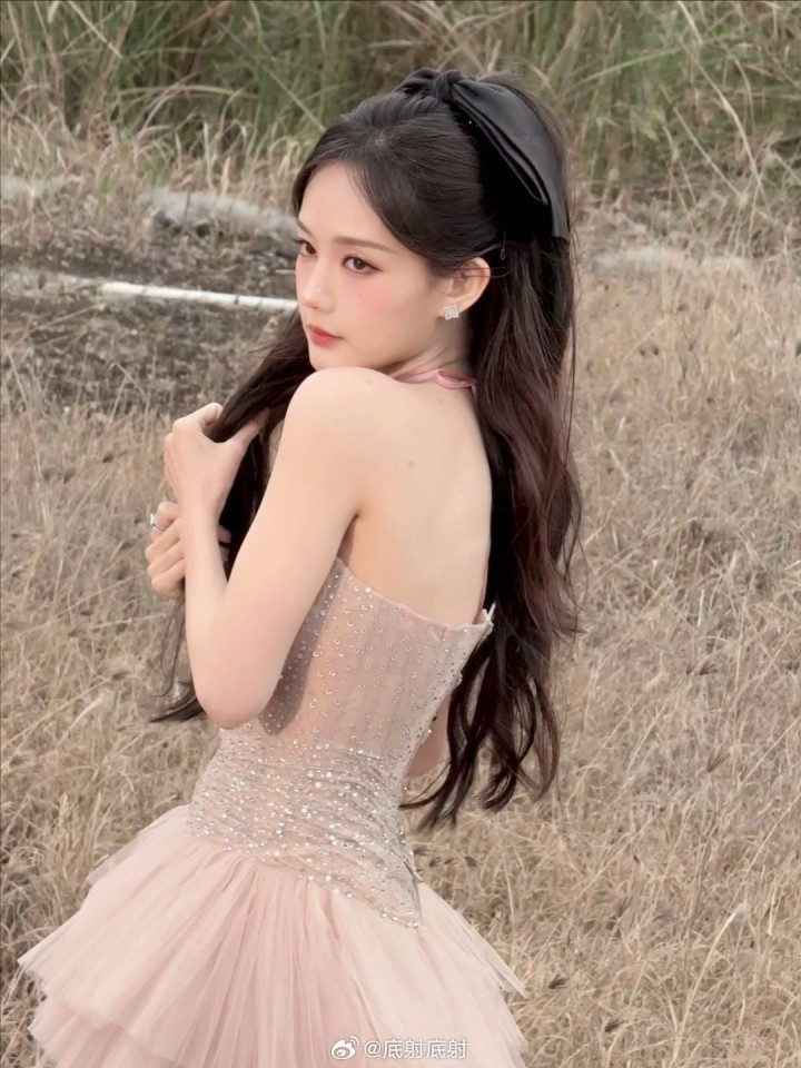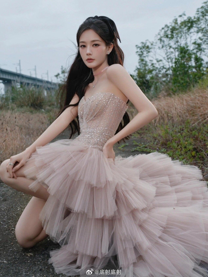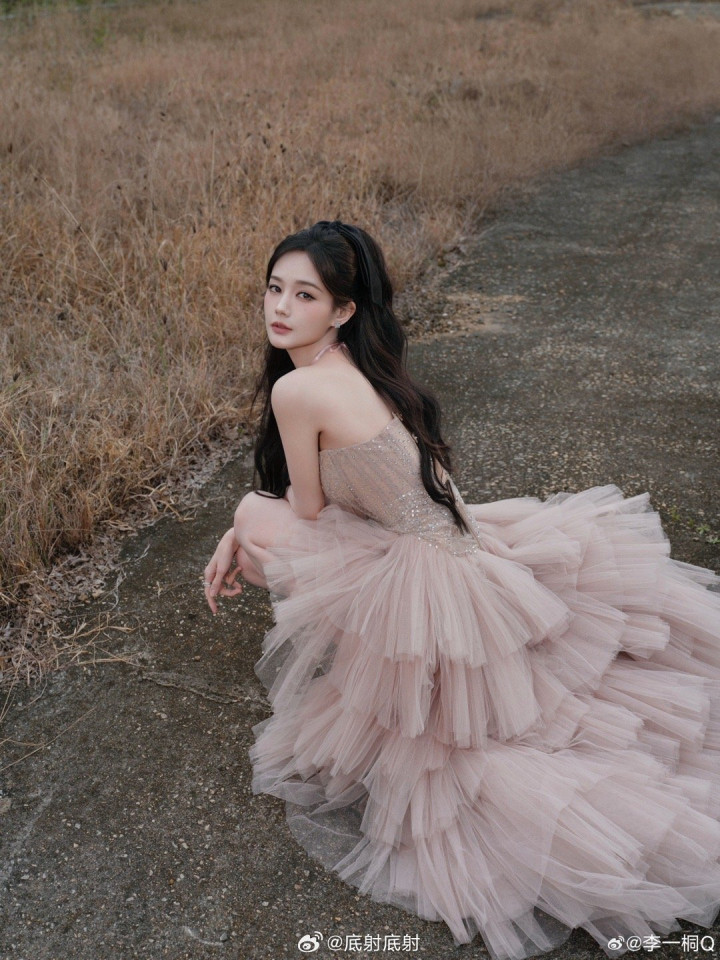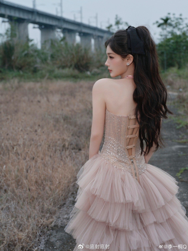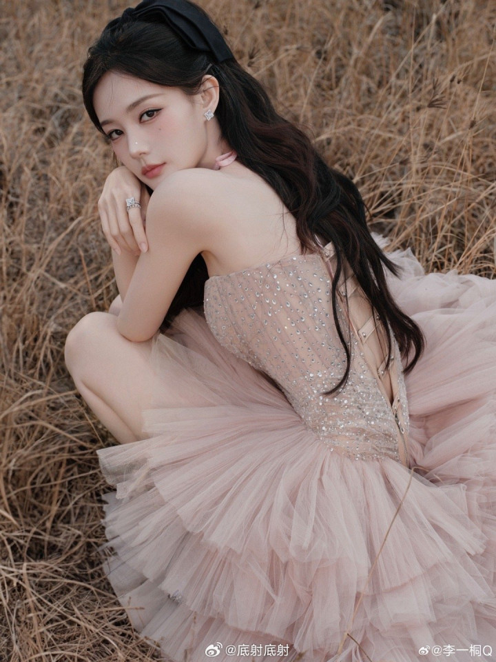李一桐裸色轻纱裙,纤腰 + 蓬松裙摆,梦幻又性感