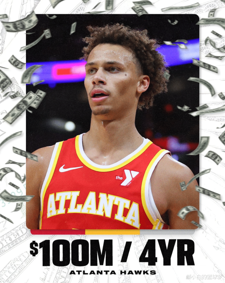 亚特兰大老鹰队与戴森-丹尼尔斯达成了四年1亿的合同,这份合同均薪仅为2500万,戴森-丹尼尔斯是2022届首轮第八顺位的新秀,上赛季被交易到老鹰后开始在联盟崭露头角,他拿到最佳一防、最快进步球员、DPOY投票第二等荣誉。